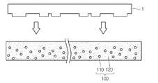 次に、図7を参考すると、図6の状態でエッチング液に漬ければマスク500が位置しない溝部分がエッチングされる。すると、導電体201は一定の導電パターンを形成するようになる。  Next, referring to FIG. 7, if the substrate is immersed in an etching solution in the state of FIG. 6, the groove portion where the