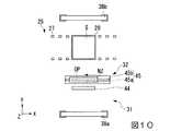 ノズル駆動部NAは、ノズルNZをX方向に移動させる。ノズル駆動部NAは、リニアモータ機構を構成する固定子40及び可動子41を有している。なお、ノズル駆動部NAとしては、例えばボールスクリュー機構など、他の駆動機構が用いられた構成であっても構わない。固定子40は、Y方向に延在されている。固定子40は、支持フレーム38に支持されている。支持フレーム38は、第一フレーム38a及び第二フレーム38bを有している。第一フレーム38aは、処理室20aの−Y側端部に配置されている。第二フレーム38bは、処理室20aのうち第一フレーム38aとの間で処理ステージ28を挟む位置に配置されている。  The nozzle driving unit NA moves the nozzle NZ in the X direction. The nozzle driving unit NA has a