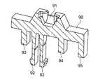 そして、前面側から前記接続線を外す場合には、例えば、図11に示すように、前記解除ボタン90の操作凹部91にドライバー121の先端を押し付け、バネ部材44,66,76の上端部を、第1,第2,第3操作片93,94,95で同時にそれぞれ押し下げることにより、前記接続線を抜き出す。