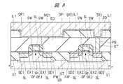 従って、電極DE1と電極DE2とは、層間絶縁膜IL2を介在せずに、バリア絶縁膜B1を介在して対向している部分を有している。すなわち、電極DE1と電極DE2とは、バリア絶縁膜B1を間に挟んで平面視で重なっている。 Accordingly, the electrode DE1 and the electrode DE2 have a portion facing each other with the barrier insulating film B1 interposed therebetween without the interlayer insulating film IL2. That is, the electrode DE1 and the electrode DE2 overlap in plan view with the barrier insulating film B1 interposed therebetween.