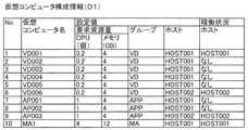 なお、仮想コンピュータ構成情報D1、ホスト構成情報D2および仮想コンピュータ稼働情報D3における稼働状況を表す情報を収集するための構成は、当業者が適宜設計可能なものであってもよい。たとえば制御用コンピュータが稼働状況を監視し、定期的に情報を取得して記録してもよい。 Note that the configuration for collecting information representing the operation status in the virtual computer configuration information D1, the host configuration information D2, and the virtual computer operation information D3 may be appropriately designed by those skilled in the art. For example, the control computer may monitor the operating status and periodically acquire and record information.