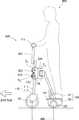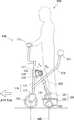 なお、フォーク112の側面に設けられた前側ステップ511に限らず、前足から加重を受けて前輪支持部材110に伝達する部材であれば、前足と接触する接触部材は、いかなる形状や構造であっても構わない。例えば前側支柱111に膝当部が設けられており、ユーザ900が当該膝当部に膝を押し当てて前輪支持部材110を前方に押し出す構造であっても良い。同様に、本体部122の上面に設けられた後側ステップ512に限らず、後足から加重を受けて後輪支持部材120に伝達する部材であれば、後足と接触する部材は、いかなる形状や構造であっても構わない。  The contact member that contacts the front foot is not limited to the