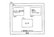 図1は、本明細書の実施の形態による箱体に収納されたX線検査システムを示すブロック図である。様々な実施の形態において、検査システム102は、4つの側壁と床と天井を有する箱体104のようなコンテナに収容され、検査対象のX線写真を得るためのソース・検出器アセンブリ106と、検査ワークステーション108とを有する。ソース・検出器アセンブリ106からの画像データは、検査ワークステーション108に送られる。検査ワークステーション108はソース・検出器アセンブリ106に近接してコンテナ内に設けられるか、必要に応じて、ソース・検出器アセンブリ106からは離間して設けられる。検査ワークステーション108は、装甲車両内、又は既存のビル、仮設構造物、又は検査システム内に設けてもよい。検査ワークステーションは、有線、又は無線通信を用いて検査システムとデータ通信ができる。  FIG. 1 is a block diagram showing an X-ray inspection system housed in a box according to an embodiment of the present specification. In various embodiments, the