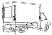 図4Fに示されるように、(脚部425が地面に接触している)図4Dの脚部位置430bを越えて、脚部425は更に鉛直方向下方に延び、その結果コンテナ405はトレーラ410のシャーシから上昇する。コンテナ405が最適の高さに位置して4本の脚部425全てが地面に接触すると、図4Gに示されるように、トレーラ410はコンテナ405の下側から遠ざかるようになる。  As shown in FIG. 4F, beyond the