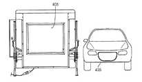 脚部425を鉛直方向に後退させるか延ばすことでコンテナ405の高さを所望の位置にした後は、対象の物体又は車両をスキャンできる。例えば、図4Kでは、コンテナ405を適切な高さに位置させて、通過する乗用車435をスキャンし、乗用車435のX線スキャン像を生成する。  After the height of the