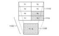 図4は、ビデオタイリング、およびそれがどのように圧縮されたビデオデータに適用されるかを示す図である。図示するように、ビデオストリーム400は、一組の連続する時間的フレームを含む(説明のために、3つの連続する時間的フレームを示す)。各フレームは、長方形、例えばタイルTn(nは1から8まで変化する)と呼ばれる符号405で示す8つの長方形に分割することができる。当然、タイルの数および形状は、異なってもよい。しかし、説明のために、考慮するビデオフレームのインデックスが何であれ、タイリングは同一であるとみなす。FIG. 4 is a diagram illustrating video tiling and how it is applied to compressed video data. As shown, the