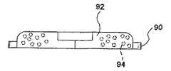 図4〜図7では、キャップ90が、複数のガス入りポケット94を備えたゲルパッド92を有している。ポケット94は、軽量フォーム又はバルーンの存在により又はゲルパッド92が硬化した後に取り出される球又は他の形状の固形物体周りにゲルを注型し又は成形することによって形成できる。モールドキャビティをスラリで充填する前か後かのいずれかにフォーム、バルーン、球又は他の形状物をモールドキャビティ内に挿入するのが良い。一形態では、ゲルパッド92の実質的に中心周りのガスポケット94の配置状態により、ゲルパッドが軽量化されると共に閉鎖性を保持しながら外科医の手又は道具の通過に対する抵抗が減少する。ゲルパッド92の別の特徴は、ゲルパッドの中心を越える領域全体を通じてガスポケット94のよりランダムな分散配置を想定しており、それにより、ゲルパッドの全体的重量が減少する。  4 to 7, the