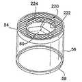 図25では、第1の布220が、キャップ54の周囲に結合され、第2の布222が、第1の布から距離を置いたところでキャップに結合されている。キャビティ224が、第1の布220と第2の布222との間の空間によって構成されている。ゲルパッド60をキャビティ224内に挿入するのが良く又は違ったやり方でキャビティ内に保持するのが良い。ゲルパッド60をキャップ54への結合に先立って、単独で処理して好ましい寸法形状及び硬さに形成するのが良い。一般にSEBSを処理するのに必要な温度は、関連のプラスチック構造体を実質的に変形させる場合がある。したがって、ゲルパッドを備えたキャップを構成するのに、別々の処理及びその後の組み立てが有用な場合がある。  In FIG. 25, a