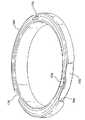 本発明の種々の形態(図11〜図20)では、リテーナ150,160は、リテーナの外周部に沿って設けられた隆起縁部158,174を有している。また、隆起縁部159,190が、一形態では、リテーナ150,184の内周部に沿って設けられている。内周部は、スリーブを挿通させる開口部157,192を画定している。外側隆起縁部158,174は、キャップとリテーナとの間の解除自在な結合関係を維持し又は固定するのを助ける。一形態では、溝129(図8)が、キャップの周囲に沿って延びていて、外側隆起縁部を受け入れてキャップとリテーナとの間の結合関係を一段と促進するようになっている。同様に、内側隆起縁部は、リテーナとスリーブとの間の解除自在の結合関係を維持し又は固定するのを助ける。内側隆起縁部も又、円筒形内壁及び(又は)ゲルパッド、スリーブ及びリテーナ相互間の封止を容易にする。一形態では、切欠き又は互いに間隔を置いた谷部又は開口部155(図11)が、内側隆起縁部159に沿って設けられており、それにより、円筒形内壁、ゲルパッド及びリテーナ相互間の引っかかりが減少するので円筒形内壁及び(又は)ゲルパッドとリテーナの係合が容易になる。  In various forms of the invention (FIGS. 11-20), the