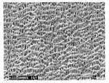 の比であるアスペクト比によって特徴付けられる。本発明の膜の1つの実施態様において、アスペクト比は0.75〜1.25の範囲である。これは、5.0を超える従来の乾燥−延伸膜のアスペクト比と対比される。下記の表を参照されたい。Regarding the shape of the hole, the hole is characterized by a substantially round shape. Please refer to FIGS. This hole shape is contrasted with slit-like holes in prior art dry-stretched membranes. See Figures 4-5 and Kesting, Ibid. Furthermore, the pore shape of the membrane of the present invention is characterized by an aspect ratio, which is the ratio of length to pore width. In one embodiment of the membrane of the present invention, the aspect ratio ranges from 0.75 to 1.25. This is in contrast to the aspect ratio of conventional dry-stretched membranes above 5.0. See the table below.