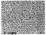 孔の形状については、孔は実質的に丸い形状であることが特徴となる。図1〜3を参照されたい。この孔の形状は、従来技術の乾燥−延伸膜のスリット状の孔と対比される。図4〜5及びKesting, Ibid参照。さらに、本発明の膜の孔の形状は、孔の幅に対する長さ
