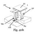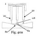 図40a及び40bにおいて、垂直アクチュエータ122,126は地面接触部84を、該地面接触部84が全体的に地面に接触するまで下降させている。この状態において、上記ヒンジ118はロックされる。  In FIGS. 40a and 40b, the