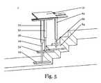 図4dは当該階段を上る方法の次のフェーズを示し、該フェーズにおいては先ず側部歩行エレメント20,50の垂直アクチュエータ26,56が、荷運搬体10が上昇されると共に該荷運搬体10に固定された中央歩行エレメントも引き上げられるように、伸長される。次いで、中央歩行エレメント80の水平アクチュエータ88が、該中央歩行エレメント80が歩行方向の前方に向かって当該階段の次の踏み段に到達するまで、駆動される。  FIG. 4d shows the next phase of the method of climbing the stairs, in which first the