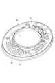 図3は、バッフル21を裏面方向から見た斜視図である。同図に示すように、バッフル21は、略長円筒状のヘッドホンユニットの形状を構成するため、略長円板状の形状である。バッフル21は、ドライバユニット10が取り付けられる部分に略円形状に開口しているドライバユニット取付部24を有する。バッフル21は、ドライバユニット取付部24よりも外周側に設けられていてバッフル21の表裏面を貫通させている第1開口部25を有する。また、バッフル21は、第1開口部25の外周(平面方向外側)に設けられていてバッフル21の表裏面を貫通させている第2開口部26を有する。  FIG. 3 is a perspective view of the