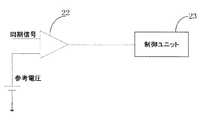 同期信号が、脈動波形信号であることを一例として、脈動波形の信号は、直流信号(又は直流成分)とゼロクロス点の交流信号(又は交流成分)とを混合することにより構成された信号と見なすことができる。コンデンサ26により、脈動波形信号における直流信号をフィルタリングすることができ、ゼロクロス点の交流信号を残る。このような実現形態において、コンパレータ27の参考電圧を0と設置すれば(例えば、コンパレータの第2入力端を接地させる)、同期信号の位相を判断することを便利にすることができる。  Taking the synchronization signal as a pulsating waveform signal as an example, the pulsating waveform signal is regarded as a signal configured by mixing a DC signal (or DC component) and an AC signal (or AC component) at the zero crossing point. be able to.