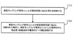 第1脈動波形が立ち上がりエッジにある場合、電流保持ユニット15におけるコンデンサの静電容量は、第1脈動波形の電流の電流値が上昇するにつれて上昇し、サンプリング保持ユニット12は、サンプリング状態にある。第1脈動波形がピーク値又は立ち下がりエッジにある場合、電流保持ユニット15におけるコンデンサの両端の電圧は、そのまま変化せず、サンプリング保持ユニット12は、保持状態にある。  When the first pulsation waveform is at the rising edge, the capacitance of the capacitor in the