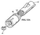 図9A〜Bは、ランセットキャリア40への駆動バネ58の設置を示す。図示の通り、駆動バネ58は、ランセットキャリア40の遠位部分に保持され、駆動バネ58の一部分は、ランセットキャリア40の近位部分の端面47に接触する。図10A〜Bは、第1のカム部材62の設置を示す。図示の通り、ランセットキャリア40のテール部分50は、第1のカム特徴62の軸方向穴を通って延在し、及び駆動バネ58の自由端部は、第1のカム特徴62の近位端部63の一部分と係合する。図11A〜Bは、ランセットキャリア40への第2のカム部材80の設置を示す。近位端部82がランセットキャリア40の遠位端部に対面する場合、及びリブ45がチャンネル87と位置合わせされる場合、ランセットキャリア40のテール部分50は内側に曲がって、第2のカム特徴80を受け入れる。図11C〜12Aは、戻しバネ90の組み立てを示し、テール部分50は内側に曲がって、そこにバネを受け入れて保持する。図12A〜12Bは、テール部分50への端部リテーナアタッチメント92の設置を示す。例示的な実施形態では、テール部分50は外側に曲がって、リテーナアタッチメント92の中心部分を受け入れて、サブアセンブリ(装填機構60、駆動バネ58、及びランセットキャリア40)の形成を完了する。  9A-B show the installation of the