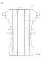 図1において、図の下方の長さ方向Lの一端側が使用者の腹を覆う腹側、図の上方の長さ方向Lの他端側が使用者の背中(臀部)を覆う背側である。この使い捨ておむつ1の背側にはテープファスナ11が設けられており、おむつ1は着用時にテープファスナ11を用いて使用者に装着される。この使い捨ておむつ1はテープタイプの使い捨ておむつと言われる。  In FIG. 1, one end side in the lower length direction L in the figure is the abdominal side covering the user's belly, and the other end side in the upper length direction L in the figure is the back side covering the user's back (buttock). A