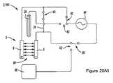 図20A1から図20A3までは、双極構成100におけるピンセット5としての電気手術デバイス2の回路図を示す。電気手術デバイス2は電圧源64に接続されている。図20A1は、動作アーム6とブレード電極26との間で動くスイッチ60と、動作アーム6と接地パッド66との間で動くスイッチ60とを含む。図示の通り、スイッチ60は、2つの動作アーム6間に電力が流れるようにかつブレード電極26および接地パッド66が開いているように、動作アーム6の両方へ電力を供給している。2つの動作アーム6は、それらの間にスイッチ60を有する接続線70を介して電気的に接続されている。  20A1 to 20A3 show circuit diagrams of the