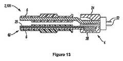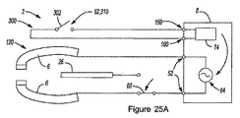 ブレード電極は、動作アームの一方または両方と同一の材料で作製されていてもよい。動作アームとブレード電極とは異なる材料で作製されていることが好ましい。ブレード電極は1つの材料で作製されていてもよい。ブレード電極は2つ以上の材料を含むことが好ましい。ブレード電極は、ステンレス鋼、銅、銀、チタン、金属、サージカルスチール、良好な熱散逸特性を有する金属、不十分な熱散逸特性を有する金属、高熱伝導性を有する材料のいずれかまたはこれらのうちいくつかを組合せたもので作製されていてもよい。ブレード電極は、第1の熱伝導性を有する材料を含んでいてもよく、動作アームは、第2の熱伝導性を有する材料を含んでいてもよい。ブレード電極、動作アームの一方または両方は、第1の熱伝導性を有する材料および第2の熱伝導性を有する材料の両方を含んでいてもよいと考えられる。第1の熱伝導性を有する材料および第2の熱伝導性を有する材料は、本明細書において検討されている材料のいずれかであってもよい。第1の熱伝導性を有する材料は、第2の熱伝導性を有する材料より低い熱伝導性を有していてもよい。第1の熱伝導性を有する材料は、第2の熱伝導性を有する材料より高い熱伝導性を有することが好ましい。ブレード電極は被覆を含んでいてもよい。被覆は、絶縁特性をもたらす、基材の改善された熱散逸をもたらす、腐食を防止する、またはこれらのいくつかを行う、任意の被覆であってもよい。被覆は、ポリマー、エラストマー、シリコーン、ポリテトラフルオロエチレン(PTFE)等のいずれかまたはこれらのうちいくつかを組合せたものであってもよい。被覆は、ブレード電極のアクティブ領域(active region)を除いて、ブレード電極の実質的に全部を覆って延在していてもよい。ブレード電極は、ブレード電極の全部または一部分を覆う1つ以上の絶縁体スリーブを含んでいてもよく、ブレード電極は、絶縁体ハウジング内におよびそこから外へ可動であってもよい。 The blade electrode may be made of the same material as one or both of the operating arms. The operating arm and the blade electrode are preferably made of different materials. The blade electrode may be made of one material. The blade electrode preferably includes two or more materials. The blade electrode can be stainless steel, copper, silver, titanium, metal, surgical steel, metal with good heat dissipation properties, metal with poor heat dissipation properties, material with high thermal conductivity or of these It may be made of a combination of several. The blade electrode may include a material having a first thermal conductivity, and the operating arm may include a material having a second thermal conductivity. It is contemplated that one or both of the blade electrode and the working arm may include both a material having a first thermal conductivity and a material having a second thermal conductivity. The material having the first thermal conductivity and the material having the second thermal conductivity may be any of the materials discussed herein. The material having the first thermal conductivity may have a lower thermal conductivity than the material having the second thermal conductivity. The material having the first thermal conductivity preferably has higher thermal conductivity than the material having the second thermal conductivity. The blade electrode may include a coating. The coating may be any coating that provides insulating properties, provides improved heat dissipation of the substrate, prevents corrosion, or does some of these. The coating may be any of polymers, elastomers, silicones, polytetrafluoroethylene (PTFE), etc., or some combination thereof. The coating may extend over substantially all of the blade electrode except for the active region of the blade electrode. The blade electrode may include one or more insulator sleeves that cover all or a portion of the blade electrode, and the blade electrode may be movable into and out of the insulator housing.