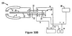 ハンドピースは、制御ボタンの1つ以上、1つ以上のスイッチ、1つ以上の電気コネクタ、1つ以上のダイオード、1つ以上のコンデンサのいずれかまたはこれらのうちのいくつかを収容している、使用者が把持するデバイスの任意の部分であってもよい。ハンドピースは、制御回路の全部または一部分、中央処理装置、または両方を収容していてもよい。ハンドピースは、電気手術デバイスと電気システムの一方または両方をジェネレータに電気的に接続してもよい。ハンドピースは、電気手術デバイスの機能要素を物理的に接続している、かつ電気手術デバイスの要素を電気的に接続している、の両方であってもよい。ハンドピースは、回路の全部または一部分を収容しており、起動回路を含む、1つ以上の制御ボタンを含む、またはそれらの組合せを行う、電気手術デバイスの本体部分、2つ以上の動作アーム間の部分、2つ以上の動作アーム間のコネクタであってもよい。ハンドピースは、外科医が握持し、1つ以上のボタンを押して所望の位置に電力を印加する部分であることが好ましい。ハンドピースは、ボタン、および電気手術デバイス、動作アーム、ブレード電極、またはこれらのうちのいくつかに電力を供給する1つ以上の電気コネクタの両方を含む中心部であることがより好ましい。ハンドピースは、1つ以上の可動部材、1つ以上のハンドピース構成要素、または両方を含んでいてもよい。 The handpiece houses one or more of the control buttons, one or more switches, one or more electrical connectors, one or more diodes, one or more capacitors, or some of these It may be any part of the device held by the user. The handpiece may contain all or part of the control circuit, the central processing unit, or both. The handpiece may electrically connect one or both of the electrosurgical device and the electrical system to the generator. The handpiece may be both physically connecting the functional elements of the electrosurgical device and electrically connecting the elements of the electrosurgical device. The handpiece houses all or part of the circuit, includes the activation circuit, includes one or more control buttons, or a combination thereof, between the body portion of the electrosurgical device and the two or more operating arms Or a connector between two or more operating arms. The handpiece is preferably the part that the surgeon holds and applies power to the desired location by pressing one or more buttons. More preferably, the handpiece is a center that includes both a button and an electrosurgical device, a working arm, a blade electrode, or one or more electrical connectors that provide power to some of them. The handpiece may include one or more movable members, one or more handpiece components, or both.