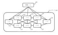 図6は、上記仮想ネットワーク131、132と、ノード111〜118との対応関係を示す図である。初期段階では、図5に示すように、バージョン=1の仮想ネットワークの情報が設定されているため、図6のノードには、優先度=1の制御情報が設定されることとなる。以降、バージョンNの仮想ネットワークを仮想ネットワーク131−Nを記し、バージョンNの仮想ネットワークを実現するための制御情報には優先度=Nが与えられるものとして説明する。  FIG. 6 is a diagram showing a correspondence relationship between the