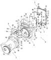 この底板5aの上部には電気コネクタ9を取り付ける開口部10が形成され、開口部10の外周縁には孔部10aが周設され、モータハウジング3c側の上部四隅には電気コネクタ固定用の雌ねじ12が形成されている。(1)