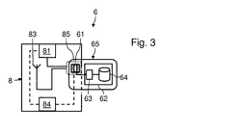 図2は、セキュアモジュール6の第1の実施形態を概略的に示す。セキュアモジュール6は、セキュアエレメントとして使用されるスマートカード65、およびスマートカードインタフェース変換装置8を含む。スマートカード65は、スマートカードインタフェース変換装置8の接続スロット85に挿入される。  FIG. 2 schematically shows a first embodiment of the