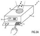 このユーザインタラクション(インターフェース14を押すこと若しくは触れること)中に心拍数を導出する別の可能性が図3Bに概略的に図示される。この実施形態によれば、心拍数はリモートPPGを用いて測定される。カメラ28、例えばフィリップスバイタルサインカメラ(http://www.vitalsignscamera.com参照)が心拍数を決定するために使用され得る。通常、このバイタルサインカメラはユーザがアラームクロック12のアラームをオフにするためにインターフェース14を押す若しくは触れるとすぐにユーザの顔に焦点を合わせる。同様の方法で、心拍数はユーザがインターフェース14に触れるとすぐにユーザの手に焦点を合わせることによっても測定され得る。  Another possibility of deriving a heart rate during this user interaction (pressing or touching interface 14) is schematically illustrated in FIG. 3B. According to this embodiment, the heart rate is measured using a remote PPG. A