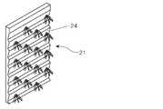 特に図示しないが、栽培パネル21に苗pを移植するには、例えば、小片に切り出されたスポンジ状の苗床で苗pを生育させて、そのような苗床ごと植え付け孔22に保持させるなどすればよい。The