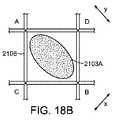 いくつかの実施形態において、突出部2103Aにより印加された張力により、例えば1つまたは2つ以上の方向における構造要素2101の構造化されたつぶれを、容易に行うことができる。例えば、充填材料2102の各セクション2102A、2102B、2102C、または2102Dの内周面上に画定された表面特徴部2103により、例えばそのつぶれ中に、予め選択された力特性を安定化構造体2101に付与するように構成されてよい。いくつかの実施形態において、予め選択された力特性は、安定化構造体2101のつぶれを制御することができ、例えば、1つまたは2つ以上の方向および/または1つまたは2つ以上の領域におけるつぶれに抵抗することなどにより、充填材料の不均一なつぶれを提供する。図18A〜図18Bを参照して、個々の突出部または要素2103Aの異なる力特性の設定を示す。図18Aにおいて、突出部2103Aは、x方向およびy方向の両方における構造要素2101の結合された安定化要素2108の圧縮に抵抗するように構成されている。したがって、突出部は、例えばそのつぶれ中に、x方向およびy方向の両方における均一な張力を安定化構造体2101に提供するように構成されている。図18Bにおいて、突出部2103Aは、x方向よりもy方向において、構造要素の結合された安定化要素2108の、より大きな圧縮抵抗を提供するように構成されている。したがって、突出部は、例えばそのつぶれ中に、x方向よりもy方向において、より大きな張力を安定化構造体2101に提供するように構成されている。図18Cにおいて、より小さな突出部2103Aを用いることにより、圧縮に対し、より大きな突出部2103Aと比較して遅延された、または小さい抵抗を提供する。好ましくは、フレーム内の隣接する領域からのパターン要素が互いに接触して、陰圧下での流体の流れを容易にする。したがって、安定化構造体2101のいくつかの領域は、流体流れを維持しながら、他の領域よりも早期にまたは迅速に、つぶれるように構成され得る。  In some embodiments, structured collapse of the structural element 2101 in one or more directions, for example, can be facilitated by the tension applied by the