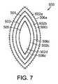 創傷閉鎖デバイスの周辺部周りの力特性の変化は、様々な方法、例えば、組織アンカーの間隔/密度、アンカーのタイプ、アンカーの長さ、またはその形状などを変えることにより、達成され得る。例えば、図9Aおよび図9Bにおいて、アンカー701a、701bは、アンカー703a、703bと比較して、より長く、組織内に、より深く貫入する。力特性はさらに、充填材の孔径および/または孔密度を変えるなど、充填材料における真空力分布を制御することにより、様々なものとすることができる。  Changes in force characteristics around the periphery of the wound closure device can be achieved in various ways, such as changing the spacing / density of tissue anchors, anchor type, anchor length, or shape thereof. For example, in FIGS. 9A and 9B, anchors 701a, 701b are longer and penetrate deeper into the tissue as compared to