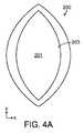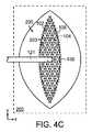 図4Bの実施形態において、充填材料102は、充填材料102に選択的なつぶれ特性をもたらす複数の内部安定化要素108(点線で示す)を含む。安定化要素108は、充填材料102のつぶれ、およびそれにより得られる組織縁203周りの組織のx方向およびy方向における変位の制御を補助する。さらなる安定化要素を、z方向に沿ったつぶれを制御するかまたは阻止するために設けることができる。図1Dに関連して上述したように、本実施形態の安定化要素108は、斜交平行線構成を含む。  In the embodiment of FIG. 4B, the