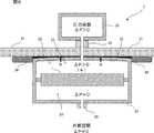 加圧装置や減圧装置では、圧力状態を切り替える際などに、以下の理由により、部材の変形音や部材間の摩擦音が生じることがあった。図17(B)は、流体制御装置101を加圧装置として構成する場合に生じる変形を模式的に示す図である。  In the pressurization device and the decompression device, when the pressure state is switched, a deformation sound of the member or a friction sound between the members may be generated for the following reason. FIG. 17B is a diagram schematically illustrating deformation that occurs when the
