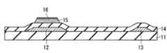 図13は、酸化物半導体膜15および酸化物導電膜16のエッチングの途中段階の状態を示す断面図である。図14は、酸化物半導体膜15および酸化物導電膜16のエッチングが終了した段階の状態を示す断面図である。図15は、フォトレジストパターン23の除去が終了した段階の状態を示す断面図である。  FIG. 13 is a cross-sectional view illustrating a state in the middle of etching of the