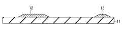 図3は、ゲート電極12および補助容量電極13の形成が終了した段階の状態を示す断面図である。まず、ガラス基板などの透明絶縁性基板11を洗浄液または純水を用いて洗浄し、ゲート電極12および補助容量電極13となる第1の金属膜を成膜する。第1の金属膜としては、たとえばクロム(Cr)、モリブデン(Mo)、チタン(Ti)、タンタル(Ta)、タングステン(W)、アルミニウム(Al)またはこれらに他の元素を微量に添加した合金などを用いる。またこれらの金属または合金を2層以上形成した積層構造としてもよい。これらの金属または合金を用いることによって、第1の金属膜として、比抵抗値が50μΩcm以下の低抵抗膜を得ることができる。  FIG. 3 is a cross-sectional view showing a state in which the formation of the