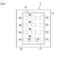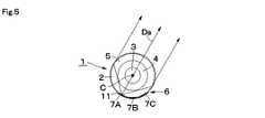 4個のパッチアンテナ7Cは、周方向に対して同じ位置に配置されると共に、周方向の他方側(図2中の反時計回りの終端側)に位置している。これら4個のパッチアンテナ7Cは、例えば軸方向に等間隔に並んで配置されている。パッチアンテナ7Aと、パッチアンテナ7Bと、パッチアンテナ7Cとは、互いに列が異なると共に、互いに独立して高周波信号の送信または受信が可能である。このため、パッチアンテナ7A〜7Cは、例えば周方向に複数の入出力端子をもつMIMOに適用されるものである。また、パッチアンテナ7A〜7Cは、例えば周方向に等間隔に並んで配置されている。 The four