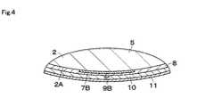 次に、図10ないし図12に、本発明の第3の実施の形態によるルネベルグレンズアンテナ装置31(以下、アンテナ装置31という)を示す。第3の実施の形態の特徴は、ルネベルグレンズには、軸方向の異なる位置に複数のアレーアンテナを設けたことにある。なお、アンテナ装置31の説明に際し、第1の実施の形態によるアンテナ装置1と同一の構成については同一の符号を付し、その説明は省略する。 Next, FIGS. 10 to 12 show a Luneberg lens antenna apparatus 31 (hereinafter referred to as an antenna apparatus 31) according to a third embodiment of the present invention. The feature of the third embodiment is that the Luneberg lens is provided with a plurality of array antennas at different positions in the axial direction. In the description of the