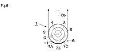 図6に示すように、4個のパッチアンテナ7Bも、パッチアンテナ7Aと同様に、ルネベルグレンズ2の中心軸Cを挟んで反対側に向けて指向性をもったビームを形成する。このとき、パッチアンテナ7Bは、ルネベルグレンズ2の周方向でパッチアンテナ7Aとは異なる位置に配置されている。このため、パッチアンテナ7Bによるビームの放射方向(方向Db)は、パッチアンテナ7Aによるビームの放射方向(方向Da)とは異なっている。 As shown in FIG. 6, the four