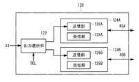 図4は、通信接続部120の内部構成例を示す図である。通信接続部120は、音声信号S1を入力し、当該音声信号S1の出力を選択する出力選択部122と、出力選択部122に接続された2つの通信チャンネル124A、124Bとを有する。出力選択部122は、制御部180からの選択信号SELに従い、音声信号S1を通信チャンネル124Aまたは124Bに出力する。通信チャンネル124Aは、近距離無線通信40Aを介してスマートフォン30Aにデータを送信する送信部126A、およびスマートフォン30Aから近距離無線通信40Aを介してデータを受信する受信部128Aを有し、スマートフォン30Aとの間で双方向のデータ通信を可能にする。通信チャンネル124Bは、近距離無線通信40Bを介してスマートフォン30Bにデータを送信する送信部126B、およびスマートフォン30Bから近距離無線通信40Bを介してデータを受信する受信部128Bを有し、スマートフォン30Bとの間で双方向のデータ通信を可能にする。 FIG. 4 is a diagram showing an example of the internal configuration of the