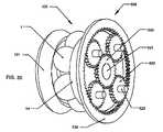 さらに図22に示す実施形態を参照すると、固定子ブリッジ477はディスク形の部品であり、中心ボアおよび貫通穴が固定子ブリッジ477の内径と外径の間に地決めされる。固定子ブリッジ477の穴は、固定子472の穴と相補的であり、これによって固定子472を固定子ブリッジ477に締結することができる。アイリスプレート409(図示せず)が、固定子ブリッジ477の半径方向外側で、軸方向には出力固定子472の間に配置される。幾つかの実施形態では、固定子ブリッジ477はアイリスプレート409よりわずかに厚く、それによってアイリスプレート409の回転の自由が可能になるが、さらに他の実施形態では、軸受けが出力固定子472とアイリスプレート409の間、さらに固定子ブリッジ477とアイリスプレート409の間に配置される。したがって、固定子ブリッジ477の外径は、アイリスプレート409の内径を配置し、その軸線を設定する働きをする。 Still referring to the embodiment shown in FIG. 22, the