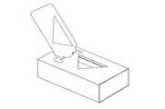 図6は、そのパックシート1の端部5を指で摘まんでいる状態を示しており、穴あきトレー底部の穴と少なくとも包装箱に設けた窓部は、パックシートの該端部を指で摘まむことができる程度の大きさを必要とする。図6においては、両手の計4本の指によりパックシートを摘まんでいるが、この例に限定されることなく、例えば片手の2本の指によりパックシートの端部5を摘まむようにしてもよい。  FIG. 6 shows a state in which the
