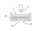 もちろん、上記図2のように別のトレーT2を用いて収納する方法の他に、別のトレーT2を採用しない方法としても良い。例えば図3に示すように、穴あきトレーT1の底面に穴4を形成しておき、その穴4を液不透過性シートSにて塞いでおく。このとき液不透過性シートSは穴あきトレーT1の穴4の内側にて塞ぐように使用される。そのような穴あきトレーT1にZ折りされてなる複数のパックシート1を載置し、次いで、その上方から薬液Lを穴あきトレーT1内に供給することにより、穴あきトレーT1内のパックシート1に薬液を含浸させる。穴あきトレーT1内にパックシート1を収納する前に予め薬液Lを穴あきトレーT1内に供給することも可能である。その後、穴あきトレーT1及び載置されたパックシート1は、包装箱内に収納される。