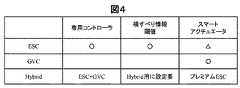 現実的には、ESCユニット内の専用コントローラにESCとGVCのハイブリッド制御ソフトを組み込むことは、ESCサプライヤでないと不可能である。より多くのドライバに当該技術を提供するためには、より多くの実現形態に対応する必要がある。図5に示すのはGVCロジックをハードウェアのどのコントローラに搭載するかを示した比較表である(GVC以外の制御内容を従来制御と記載している)。たとえば図5のNo.2では、GVCはスマートアクチュエータとして、電動油圧型ブレーキアクチュエータを用いて実現されており、横すべり防止効果は通常の汎用ESCにて実現される構成である。また、No.5においては電気自動車における回生制動力をGVCに用いた構成で、横すべり防止効果は通常の汎用ESCにて実現される構成である。また、No.1,3,4,6は、NVH性能が高いプレミアムESCを用いているが、No.1以外は、高速演算が必要なESCコントローラの外側にGVCロジックを搭載し、CAN信号によりプレミアム仕様のESCを外部制御するような構成となっている。 Practically, it is impossible without the ESC supplier to incorporate the ESC and GVC hybrid control software into the dedicated controller in the ESC unit. In order to provide the technology to more drivers, more implementations need to be addressed. FIG. 5 is a comparison table showing in which controller of the hardware the GVC logic is mounted (the control contents other than GVC are described as conventional control). For example, in No. 2 in FIG. 5, GVC is realized as a smart actuator using an electrohydraulic brake actuator, and the side slip prevention effect is realized by a general-purpose ESC. In No. 5, the regenerative braking force of the electric vehicle is used for GVC, and the side slip prevention effect is realized by a general-purpose ESC. In addition, No. 1, 3, 4, 6 use premium ESCs with high NVH performance, except for No. 1, GVC logic is mounted outside the ESC controller that requires high-speed calculation, and CAN signals are used. It is configured to externally control the ESC of the premium specification.