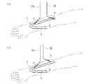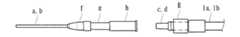 動脈側穿刺針a及び静脈側穿刺針bは、動脈側血液回路1a及び静脈側血液回路1bの先端にそれぞれ接続可能とされたもので、図2に示すように、硬質樹脂等から成る先端部fに取り付けられたカニューレ(血管内留置)から成る。また、先端部fは、鉗子用可撓性チューブgを介して硬質樹脂等から成る接手hが連結されており、同図に示すように、これら先端部f、鉗子用可撓性チューブg及び接手hが一体化されている。  The artery-side puncture needle a and the vein-side puncture needle b can be connected to the tips of the artery-side blood circuit 1a and the vein-
