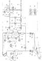 さらに、透析液排出ラインL2には、複式ポンプ6を迂回する迂回ラインL3、L6が接続されており、迂回ラインL6には電磁弁V6が接続されるとともに、迂回ラインL3には除水ポンプ7が接続されている。しかして、血液回路1にて患者の血液を体外循環させる過程で除水ポンプ7を駆動させることにより、ダイアライザ2を流れる血液から水分を取り除いて除水し得るようになっている。  Furthermore, bypass lines L3 and L6 for bypassing the