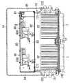 また、天板83の後端縁には、側板85(以下、第2側板85と呼ぶ。)が下向きに垂れ下がるように形成されることが好ましい。この第2側板85は、左右両側の端部をそれぞれL字形に曲げるように形成されることが好ましい(図2及び図5参照)。第2側板85は、図5に示すように、端部を除く中央部分に排気部850が設けられることが好ましい。この排気部850は、縦横に並べて設けられる多数の貫通孔8500で構成されることが好ましい。これら多数の貫通孔8500は、上下方向よりも左右方向に多く並ぶように設けられることが好ましい。すなわち、排気部850は、左右方向を長手方向とする長方形状の範囲内に設けられることが好ましい。なお、第2側板85の右側(図5においては左側)の端部に第1端子台88が取り付けられ、第2側板85の左側(図5においては右側)の端部に第2端子台89が取り付けられることが好ましい。  Further, it is preferable that a side plate 85 (hereinafter, referred to as a second side plate 85) be formed to hang downward at the rear end edge of the