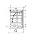なお、本明細書中における「タッチ」とは、入力媒体を表示画面に接触させる操作全般を含む。すなわち、タッチした入力媒体を所定時間内に表示画面から離間させるタップ操作、タッチした入力媒体を表示画面上で静止させるロングタッチ操作、タッチした入力媒体を表示画面上でスライドさせるスライド操作、表示画面上をスライドする入力媒体の加速度が閾値以上であるフリック操作、表示画面上の異なる位置にタッチした2つの入力媒体を互いに近づける向きにスライドさせるピンチイン操作、表示画面上の異なる位置にタッチした2つの入力媒体を互いに離れる向きにスライドさせるピンチアウト操作等は、タッチの一例である。 Note that “touch” in the present specification includes all operations for causing an input medium to contact a display screen. That is, a tap operation to separate the touched input medium from the display screen within a predetermined time, a long touch operation to stop the touched input medium on the display screen, a slide operation to slide the touched input medium on the display screen, the display screen Flick operation where the acceleration of the input medium sliding on the top is above the threshold, pinch-in operation to slide the two input media touched at different positions on the display screen towards each other, two touched at different positions on the display screen A pinch out operation or the like in which the input media are slid away from each other is an example of a touch.