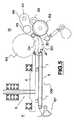 図14に示した実施の形態に関し、前記下部巻取ローラ(R5)の支持体は前記揺籠部(3)を形成する後部側上に延伸し、当該揺籠部は前記シャフト(301)上に後方に向かって枢着されかつその前部側上では前記アクチュエータ(A5)に接続しており、それによって前記アクチュエータ(A5)が起動すると、前記揺籠部(3)及びローラ(R5)双方がシャフト(310)の軸の周りを回転する。この実施の形態においては、前記アクチュエータ(A5)は前記ローラ(R5)の運動及び前記揺籠部(3)の幾何学形状の双方を制御する。 With respect to the embodiment shown in FIG. 14, the support of the lower take-up roller (R5) extends on the rear side forming the swinging portion (3), and the swinging portion is on the shaft (301) Are pivoted backwards and connected to the actuator (A5) on the front side thereof, whereby both the rocker (3) and the roller (R5) are activated when the actuator (A5) is activated. Rotates about the axis of the shaft (310). In this embodiment, the actuator (A5) controls both the movement of the roller (R5) and the geometry of the rocker (3).