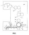 従って、前記下部巻取ローラ(R5)の前記支持体(S5)が降下している場合には、前記プレート(30)は前記シャフト(301)の軸(x−x)の周りを回転し、その結果、各プレートの前側部(302)は前記ローラ(R5)に従い、そしてその当初の位置に留まることはない。 Thus, when the support (S5) of the lower winding roller (R5) is lowered, the plate (30) rotates around the axis (x-x) of the shaft (301), As a result, the front side (302) of each plate follows the roller (R5) and does not remain in its original position.
